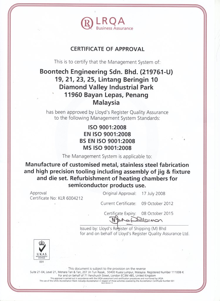 Quality and Services are the utmost priority in Boontech’s commitment to their customers. Timely delivery and good quality control with motivated, skilled and experienced machinists will ensure that finished products fulfil customers demands & requirements.